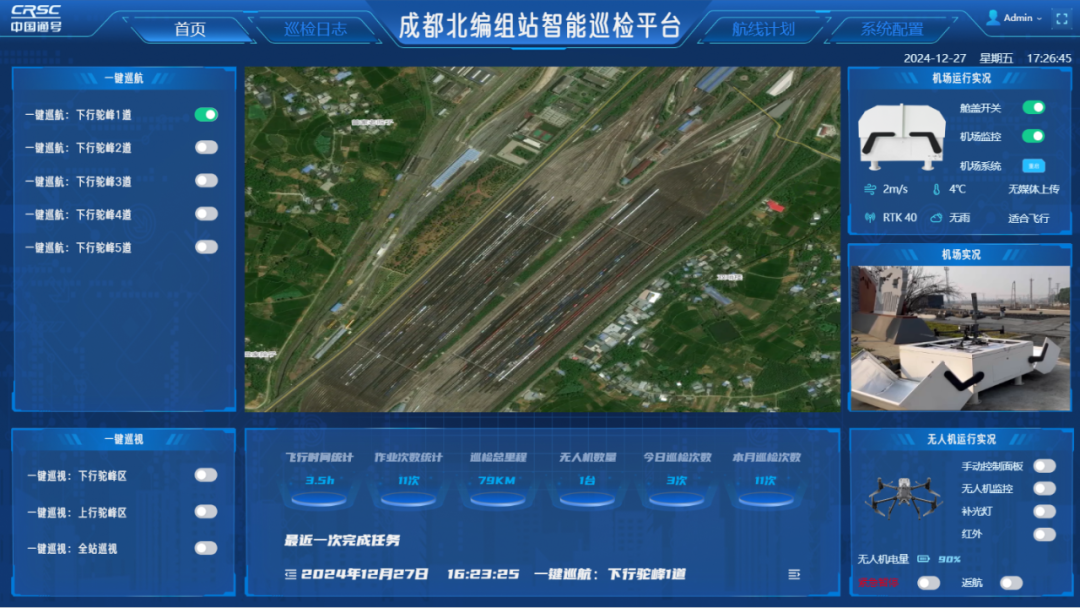 12月28日,中国通号研究设计院集团联合中国铁路成都局集团,在成都北编组站完成全国首个铁路编组站无人机智能巡检系统的部署应用。该系统从功能上考虑了车站、工务、车辆和电务等多专业的综合需求,实现一次巡检,数据多部门共用的模式,开启“低空+铁路”行业应用新篇章。