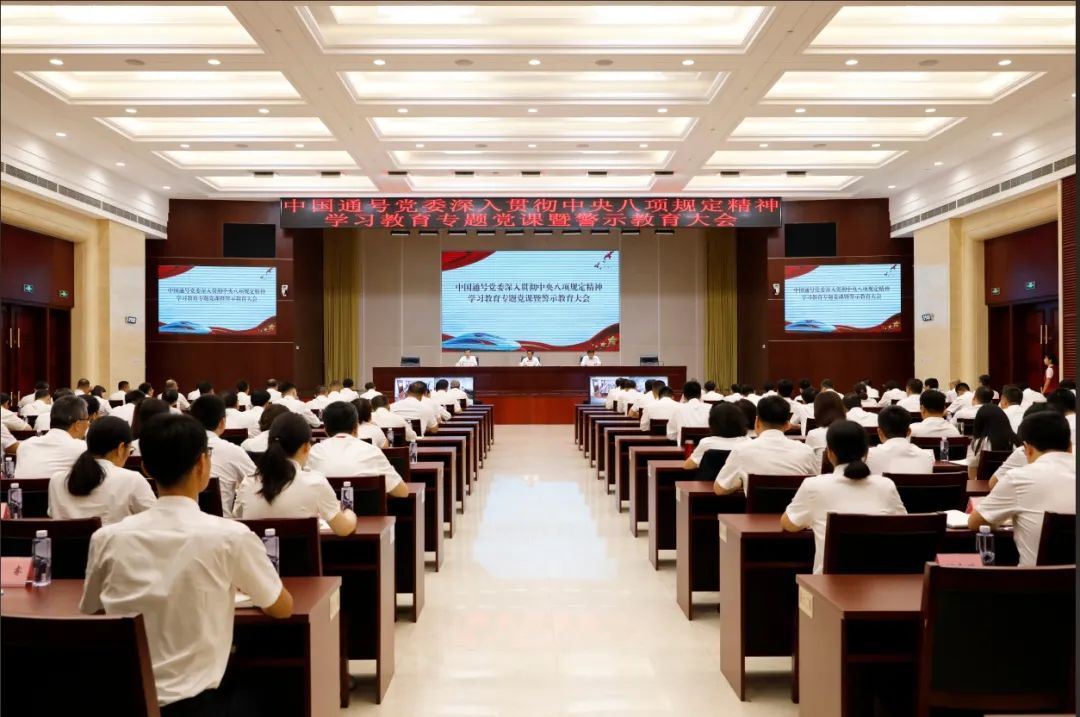 7月7日,中国通号党委召开深入贯彻中央八项规定精神学习教育专题党课暨警示教育大会,会议深入学习贯彻习近平总书记关于深入贯彻中央八项规定精神学习教育的重要讲话和重要指示批示精神,深入解读中央八项规定及其实施细则精神,深刻剖析典型违纪违法案例,引导全体党员干部以案明纪、以案促改,持续强化作风意识、纪律意识与规矩意识,不断提升政治素养和党性修养,以过硬作风和扎实纪律为企业高质量发展提供坚强政治保证。