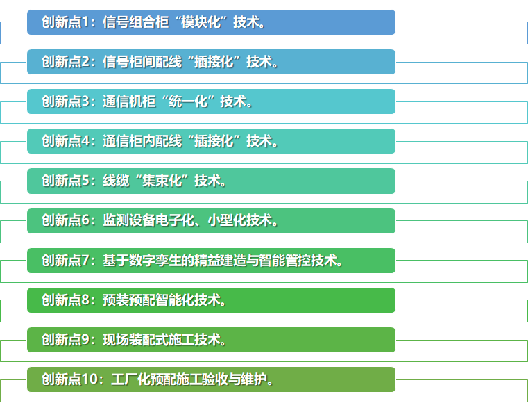 高速铁路通信信号工厂化预配技术是首创性、集成式探索应用,推动了通信信号工程施工向集约化、高端化、智能化发展。该技术的模块化、统一化、插接化、集束化等创新技术运用,可避免施工配线错误带来的安全隐患,有效提升设备可靠性,改善设备运维条件,符合新质生产力的质态和发展方向。