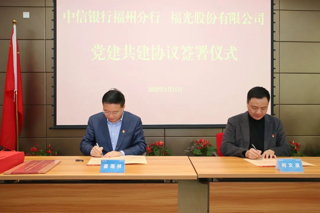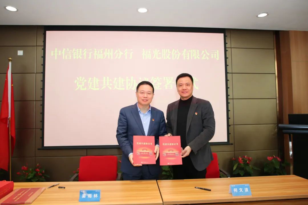 活动最后,福光股份与中信银行福州分行签署了党建共建协议,并接受了中信银行福州分行赠送的党建馆画册及习近平在福建系列采访实录学习笔记。