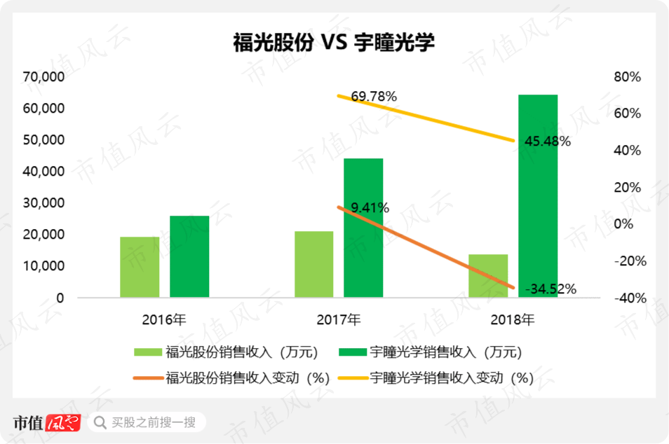2016年至2018年,海康威视和大华股份同时是福光股份和宇瞳光学(300790.SZ)的前两大客户。宇瞳光学针对两位大客户的销售,无论是规模还是增长率都明显大于福光股份,而2018年,福光股份对这两位大客户的销售收入还出现了大幅下滑。