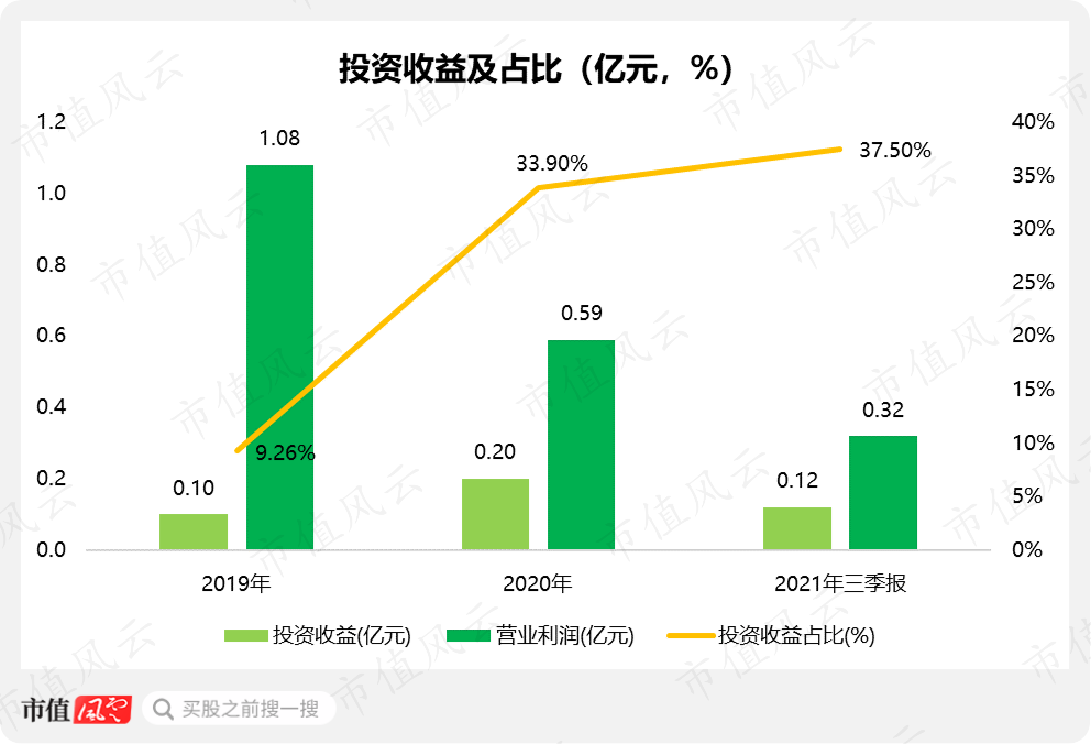 2020年及2021年前三季度,福光股份的投资收益分别为0.20亿元、0.12亿元,占营业利润的比重为33.90%、37.50%。