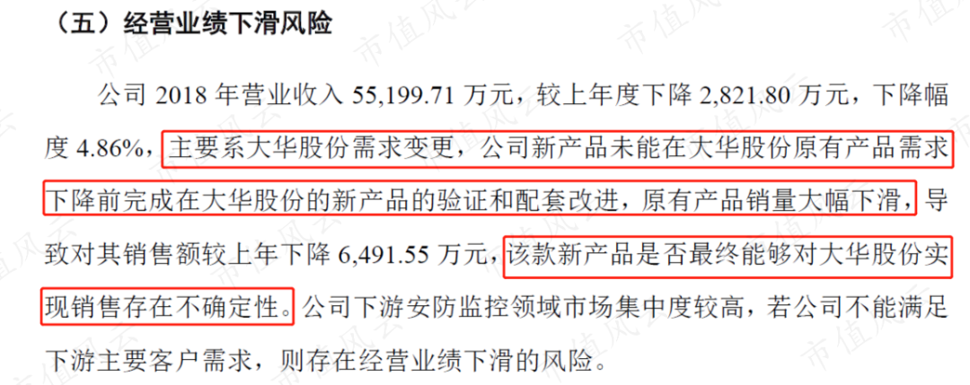 而福光股份在招股说明书中曾提到2018年业绩下降是因为其产品未能及时满足大华股份的需求变更,并提示了未来针对大华股份的新产品销售存在不确定的风险。