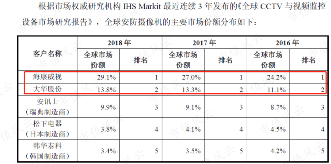 2016年至2018年,海康威视和大华股份在安防摄像机领域,已连续三年分别是全球市场份额第一、第二的厂商。