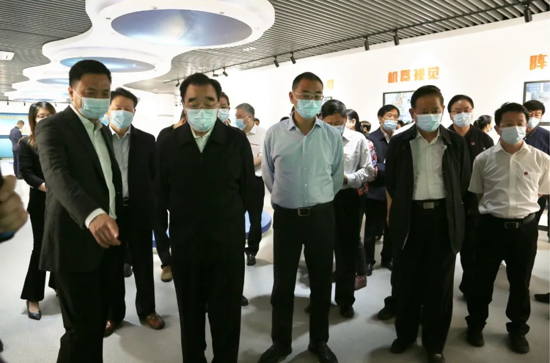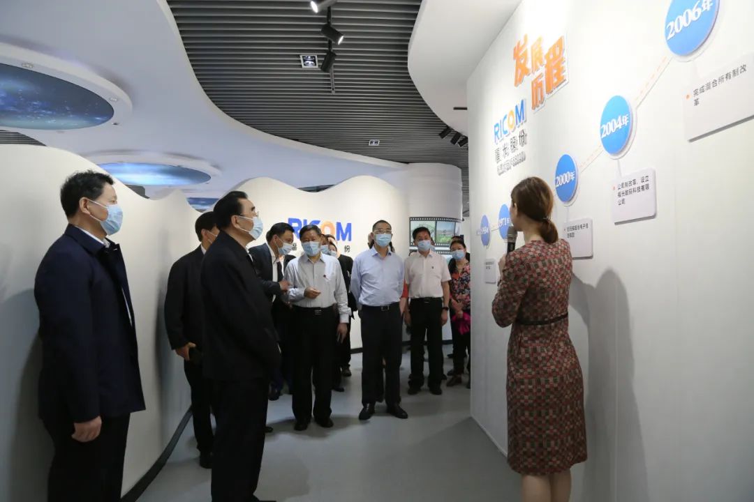 在大厅,调研组成员认真观看公司宣传片,了解公司发展概况。在公司展厅,何文波董事长向张庆黎副主席汇报了公司的发展历程、核心技术、创新成果以及公司在国防教育方面做出的成绩。