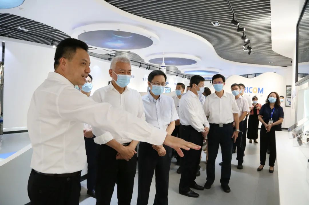 8月8日,科技部党组书记、部长王志刚,党组成员、副部长,国家外国专家局局长李萌等领导率队莅临福建福光股份有限公司,调研企业发展和科技创新情况。福建省副省长康涛,福州市委常委、常务副市长林中麟,马尾区管委会主任、区长庄永智,区委常委、副区长吴晓峰等领导陪同调研。公司党委书记、董事长何文波,党委副书记、董事侯艳萍,党委副书记、人力行政中心总经理陈海珠热情接待调研组一行。