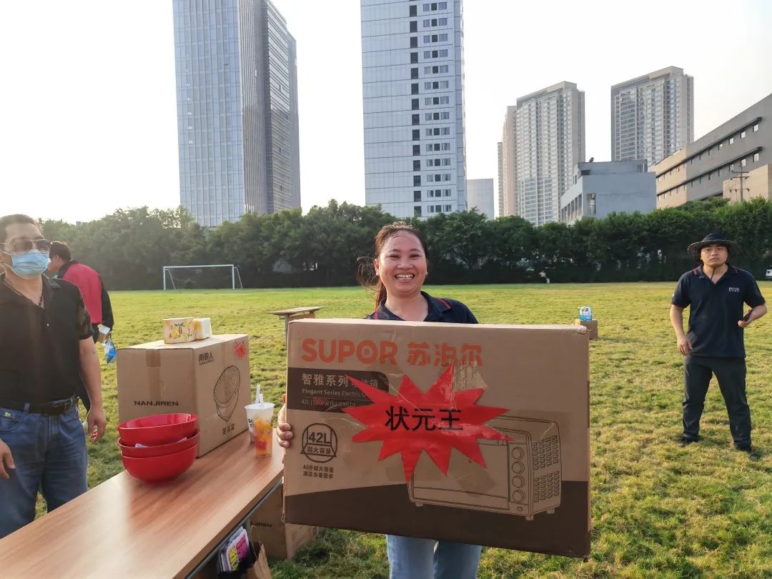 作为中秋节的经典项目,博饼比赛可谓是万众期待。当天,一号、二号、三号基地都举办了精彩的博饼活动。各桌的骰子在大瓷碗中落下,发出叮叮当当的清脆响声。大家纷纷摩拳擦掌,欲把状元大奖收入囊中。现场,骰子声、欢呼声、尖叫声此起彼伏。