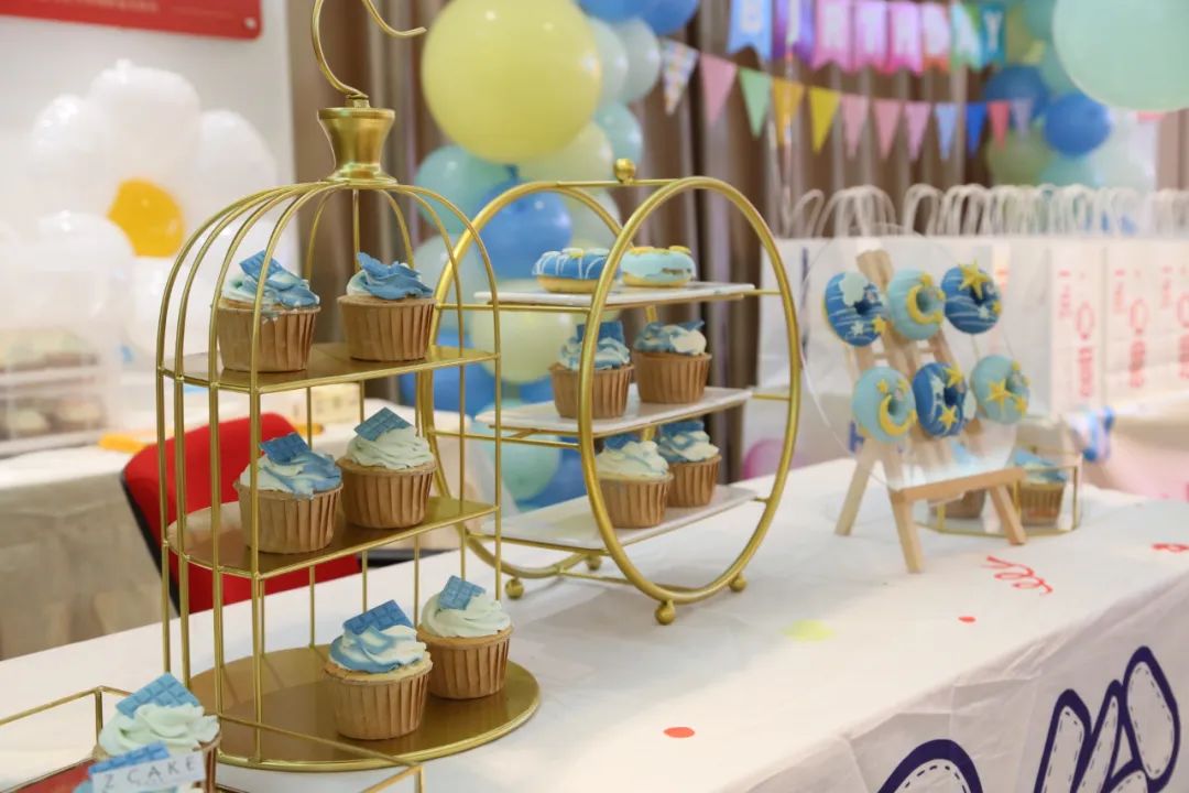 下午16时许,生日会现场摆起了花式“摊位”,鲜花、气球、彩旗“盛装”打扮,处处洋溢着幸福的味道。丰盛美味的佳肴点心、冰爽可口的各式饮料,以及为寿星们量身定制的专属礼物,惊喜不断,让大家幸福感爆棚。