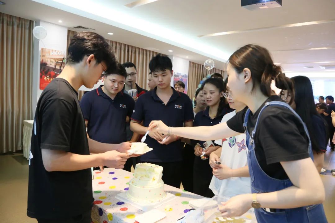 欢乐的氛围中,迎来生日会的高潮——切蛋糕。带着公司的祝福,伴着温馨的生日歌,大家一起吹灭蜡烛许下心愿,将难忘的一刻铭记于心。