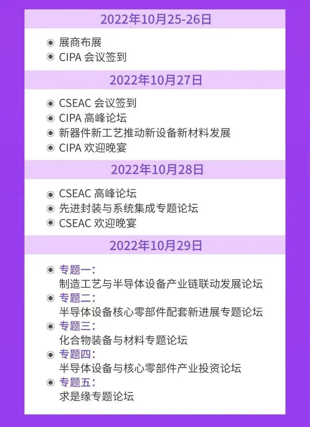 CSEAC是半导体设备领域的权威研讨会,本届大会以“凝聚“芯”合力,发展“芯”设备”为主题,邀请了众多业界人士参与盛会,会议将针对当前半导体设备产业的趋势,围绕着半导体设备产业发展的机遇与挑战、国产半导体零部件现状及未来发展途径、功率器件领域国产设备机会等话题进行深入交流与探讨。