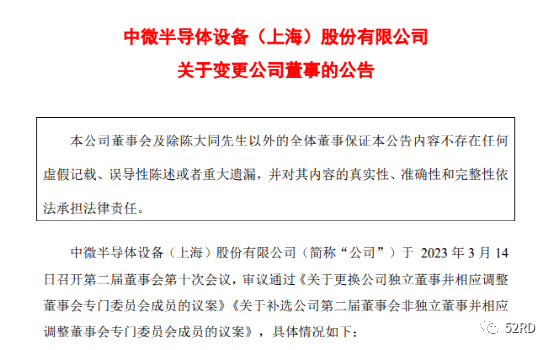 3月14日,国内半导体刻蚀设备龙头——中微公司(中微半导体设备(上海)股份有限公司)发布公告称,变更1名独立董事和3名非独立董事。