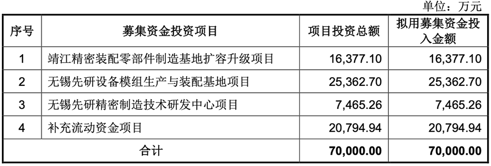 其法定代表人、控股股东、实际控制人为公司董事长兼总经理游利。此次IPO,先锋精科拟募资7亿元,用于靖江精密装配零部件制造基地扩容升级、无锡先研设备模组生产与装配基地、无锡先研精密制造技术研发中心及补充流动资金项目。