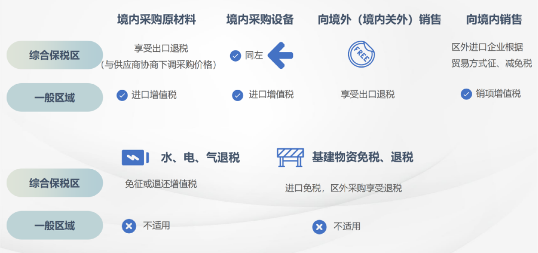 金桥综合保税区实行“双免”税收政策(免除关税、增值税),为企业构建全链条保税业务体系。区内企业可开展生产加工、保税及非保税物流、研发检测、全球维修、转口贸易等多元化业务,并享有一般纳税人资质准入政策,支持内外贸一体化发展。创新实施货物分类监管制度,推行“一线先进区后报关、二线分送集报”通关模式,海关与管委会联合设立24小时全天候监管服务窗口,实现智能化快速通关。