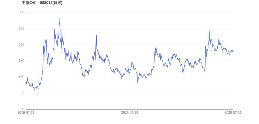 从上市首日至今,中微公司的市值实现了1.65倍的增长,显示出资本市场对公司发展前景的认可。2024年11月12日,中微公司的市值巅峰达到1599.00亿元,股价也顺应升至256.99元。而至7月21日收盘,中微公司的股价为183.7元,市值为1150.23亿元,相比峰值时期市值减少448.78亿元,市值蒸发了28.07%。