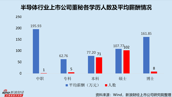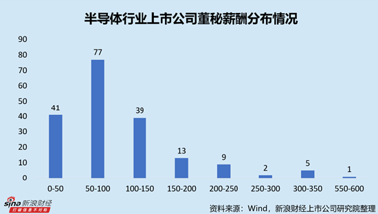 从半导体行业的薪酬分布角度来看,187位董秘中有77位的薪酬水平位于50-100万元区间,占比超四成。此外,半导体行业中高薪董秘占比极高,薪酬超100万元的董秘有69位,占比达37%。其中,薪酬最高的董秘为中微公司刘晓宇,薪酬达到583.18万元,远超其他董秘。尾随其后的是京仪装备郑帅男,其薪资为339.54万元。