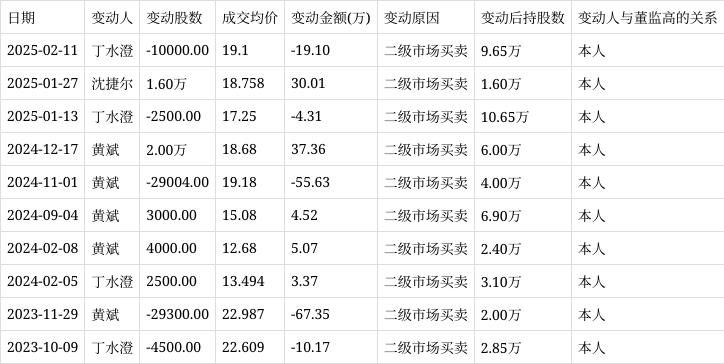上交所公开信息显示,2月11日,天臣医疗核心技术人员丁水澄在二级市场买卖公司股票,减持股数1.00万股,成交均价19.10元,变动金额19.10万元,变动后持股数为9.65万股。
