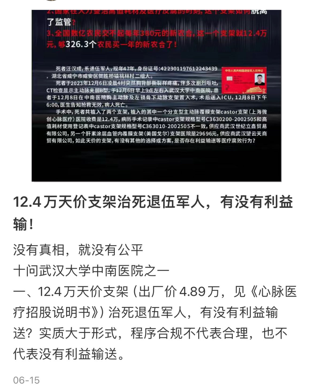有说法是,某社交平台上曾有人爆料,称花了12万多用了Castor支架,最后人没救下来。最后一查,这款支架出厂价不到5万块钱。不知道这件事与医保局所称的“群众信访”是否有关。