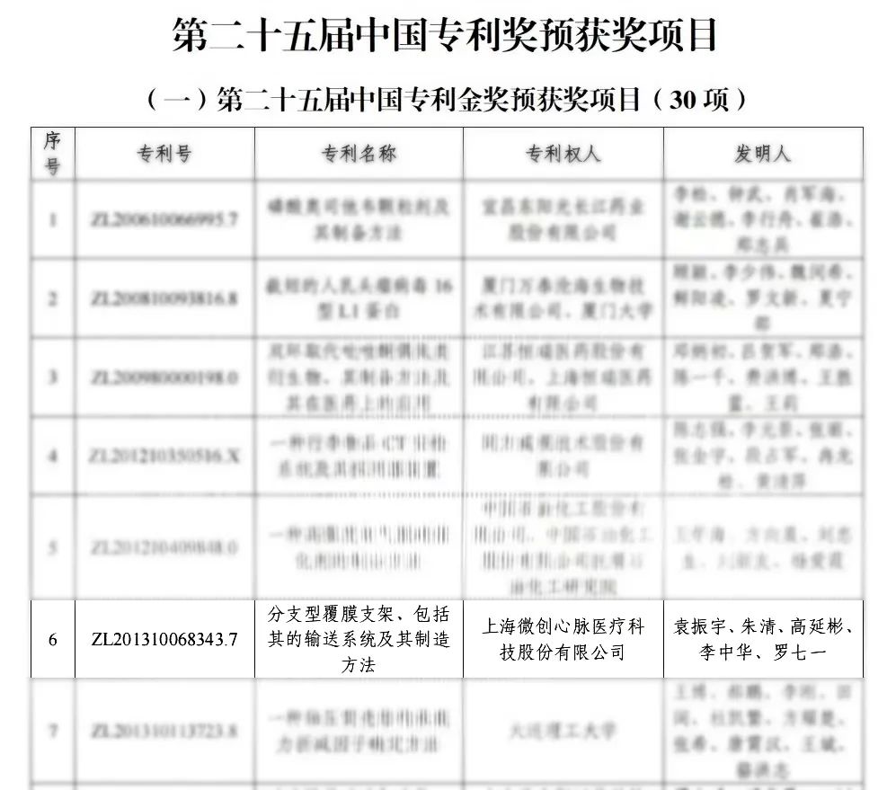 近日,国家知识产权局公布了第二十五届中国专利奖获奖名单,上海微创心脉医疗科技(集团)股份有限公司(以下简称“心脉医疗?”)Castor?分支型主动脉覆膜支架及输送系统(以下简称“Castor?分支型支架”)的专利荣获中国专利金奖,获奖专利名称为“分支型覆膜支架、包括其输送系统及其制造方法”(专利号:ZL201310068343.7)。这是我国唯一的专门对授予专利权的发明创造给予奖励的国家级政府部门奖,也是我国知识产权领域的最高奖项。