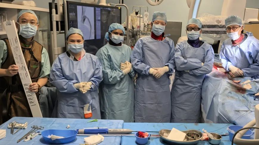 ▲Yew Pung Leong教授(右2)及其团队、舒畅教授(右3)和心脉医疗?团队合影