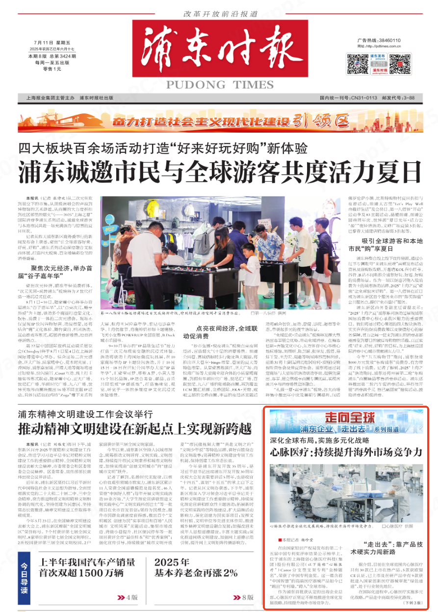 近期,心脉医疗?荣获浦东新区首批出海企业总部称号,《浦东时报》推出浦东企业“走出去”系列专题报道,聚焦企业全球化发展进程。其中心脉医疗?作为企业“走出去”的优秀案例被重点报道。