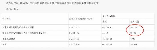 公司2022年度向特定对象发行股票募投项目出现延期及投入较低情况。公司定增项目累计投入较低,其中外周血管介入几乎未任何投入,而全球总部及创新与产业化基地项累计投入仅为33.12%。如此低的投入是否说明公司此前定增项目有圈钱之嫌?