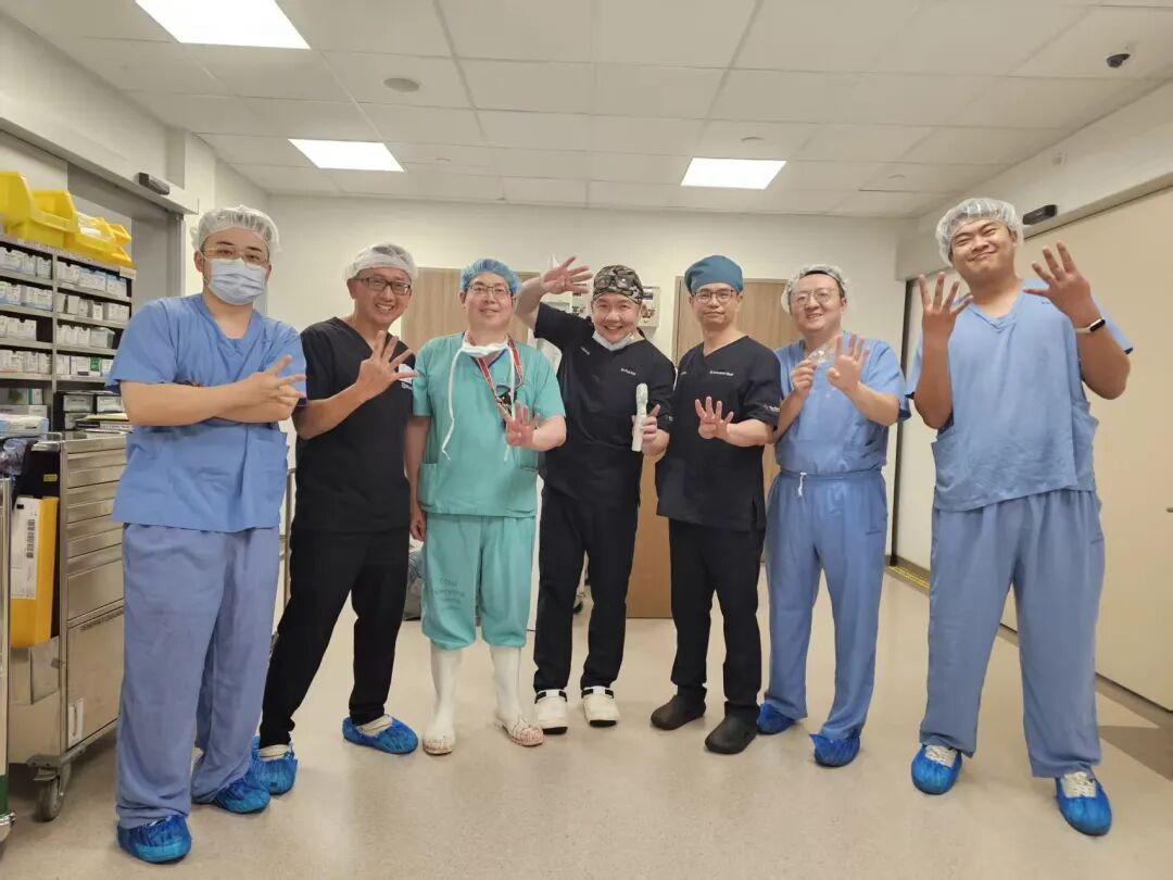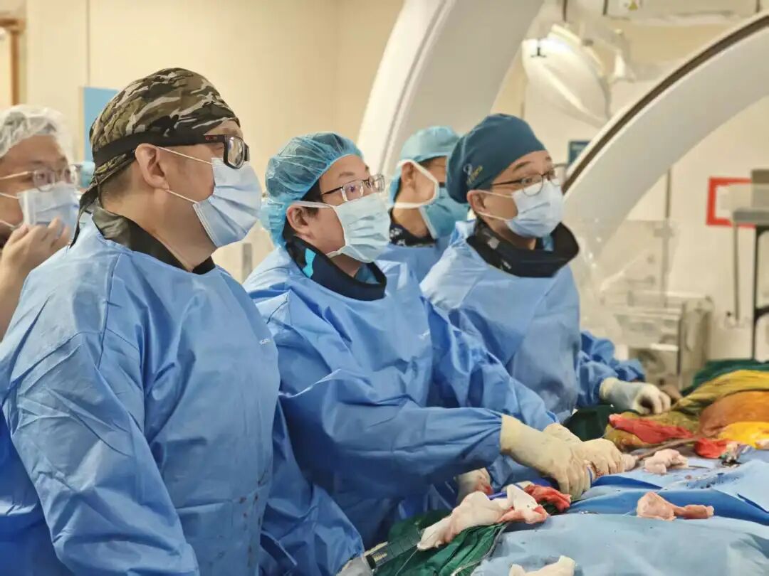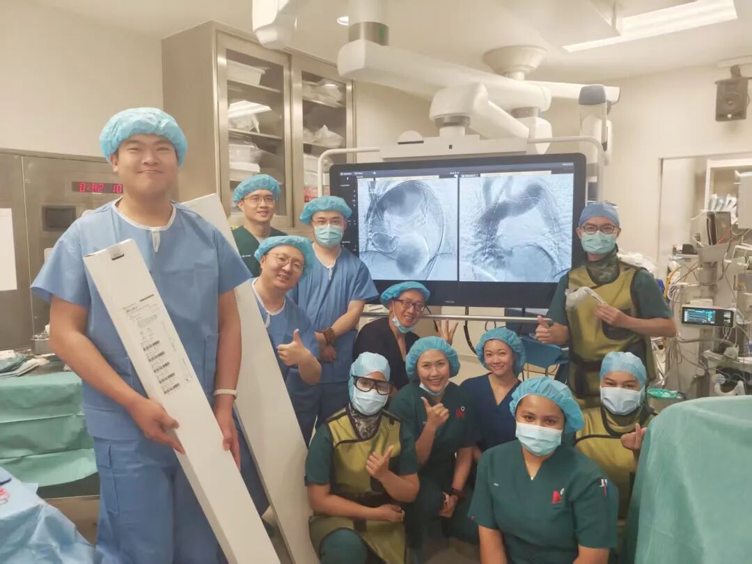 ▲Glenn Tan教授(左三)团队与心脉医疗?团队合影、术中场景
