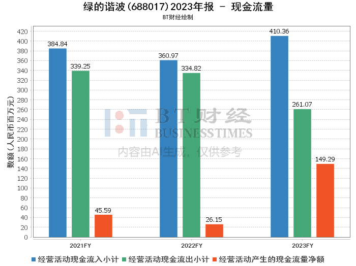 现金流量数据方面,绿的谐波2023年经营活动产生的现金流量净额大幅增长至1.49亿元,同比激增470.83%。这一亮眼成绩主要得益于公司购买商品、接受劳务支付的现金减少以及前期质押的货币资金解除质押。这使得公司在应对复杂多变的市场环境时,具备了更充裕的现金流支持。同时,投资活动和筹资活动产生的现金流量净额虽有所波动,但总体保持平稳态势,为公司的持续发展提供了有力保障。