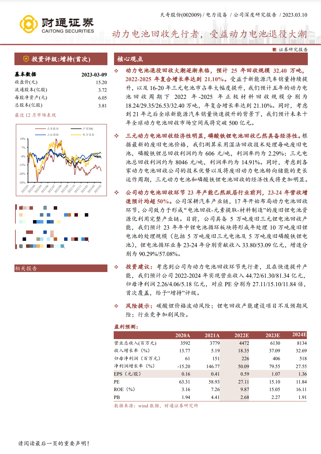 从2021年起,碳酸锂价格持续上涨,废料采购端的计价方式、采购系数处于剧烈波动和变化,电池回收行业处于初期阶段,主要特征包括:(1)产能增速较快,但更多是规划、计划产能,短期内规划产能或工艺成熟度未必能够实现,或是产能利用率可能受到影响;(2)在价格暴涨预期的引导下,行业玩家急剧增加,贸易商、破碎初加工企业、湿法冶炼企业纷纷加入。市场预期逆转之后,市场需求不足,随着库存出清,也有大批企业退出,行业复兴过程缓慢。(3)整个产业链来看,现正处于新的商业模式快速构建的阶段,如公司与头部主机厂、电池厂深度绑定的模式,原料供应链的变化能够对公司竞争格局带来正向影响。随着行业充分洗牌、后续退役电池持续起量,电池回收行业的竞争格局重塑后,公司渠道优势、回收网络布局及技术工艺优势能够带来更为稳定、清晰的毛利空间。