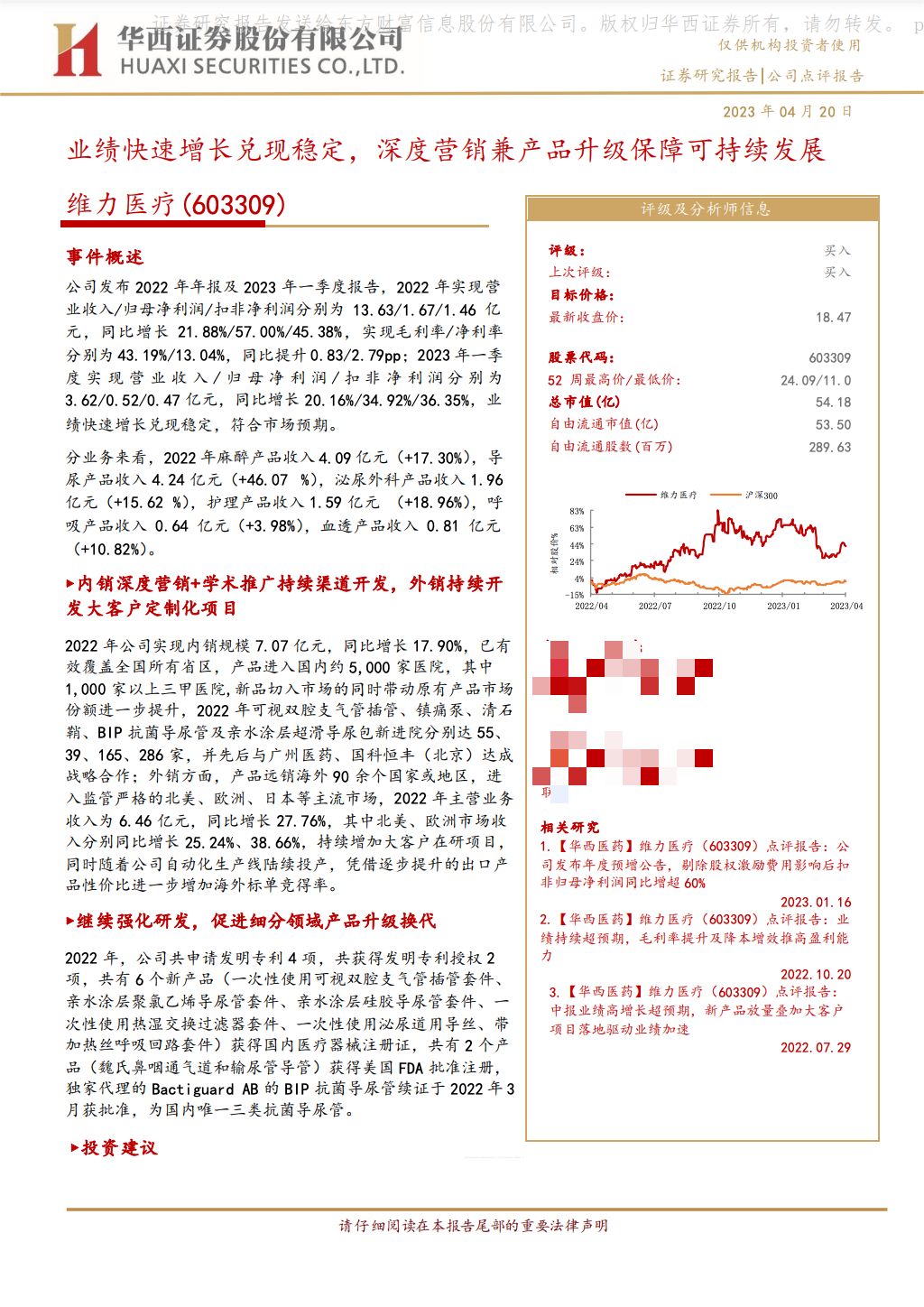 答:公司内销进行分线销售,4个不同营销部门分管不同的产品线,每个部门营销人员100人左右,商务和学术人员各占一半。短期内,公司国内营销团队整体架构不会有大的变化,在关键岗位上可能会有调整和人才引进。今年公司董事长开始分管内销业务,并将推动公司新产品定位和终端价格策略的调整以及销售人员考核指标的优化,相信将进一步推动公司新产品在终端医院的加速放量。