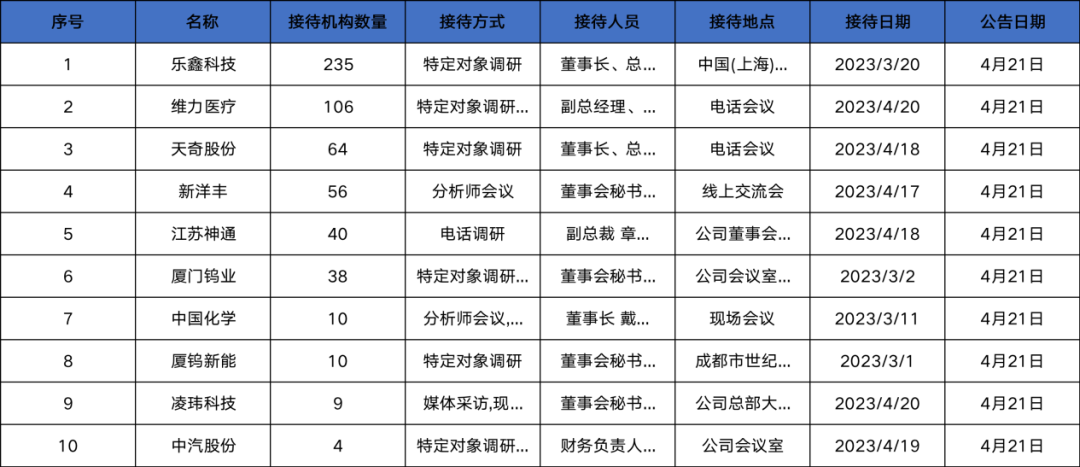 重点机构:嘉实基金、交银基金、景顺长城、泉果基金、睿郡资产、万家基金、兴证全球基金、易方达基金、中庚基金、中欧基金、富国基金、高毅资产