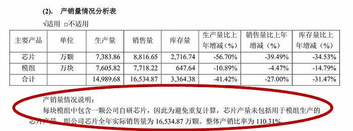 乐鑫科技特别说明,“每块模组中包含一颗公司自研芯片,因此为避免重复计算,芯片产量未包括用于模组生产的芯片产量,即公司芯片全年实际销售量为16,534.87万颗”。
