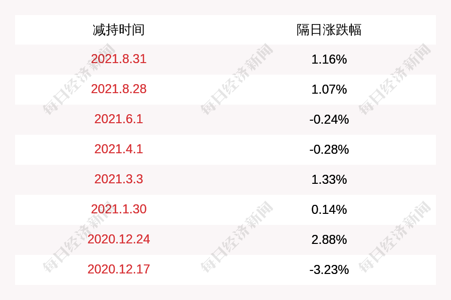 2.奥福环保上次发布减持公告是2021年08月31日,第二个交易日上涨1.16%,奥福环保近一年共发布9次减持类公告。更多关键信息,请搜索“道达号”。