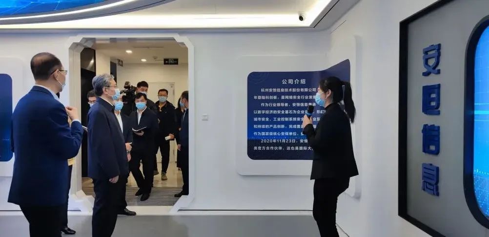 武卫东书记一行首先来到安恒信息安全创新体验中心,详细了解了企业概况以及唐山子公司发展情况。安恒信息唐山子公司是唐山市委网信办引进的本地企业。2020年12月28日,唐山市委网信办与安恒信息达成战略合作,共同打造唐山网络安全产业生态,建设“一总部、一中心、一基地”,以“大数据+智能安全”为核心,赋能唐山智慧城市建设,推动唐山新旧动能转换和高质量发展。