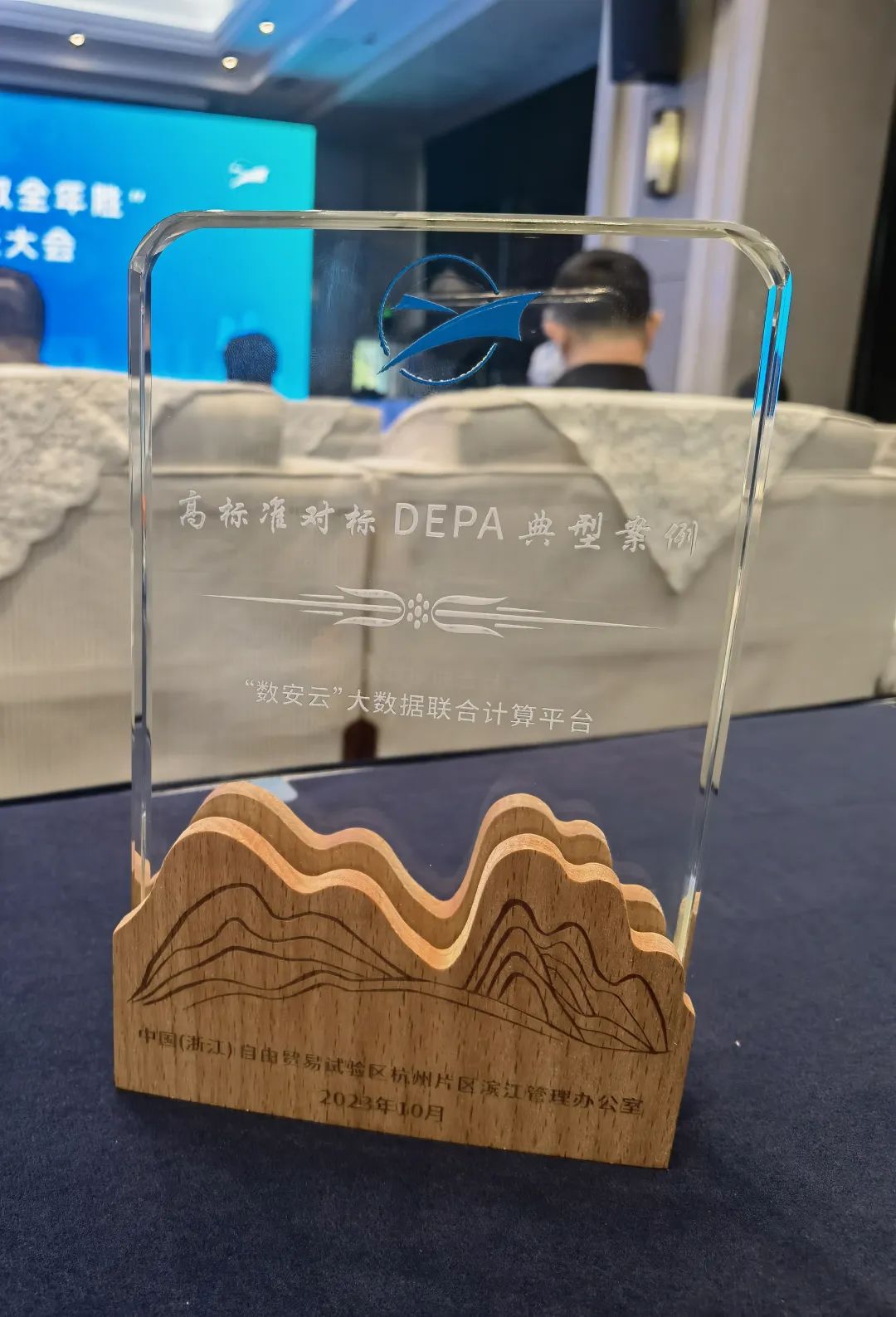 会上颁发了中国(浙江)自由贸易试验区杭州片区滨江区块2023年度高标准对标DEPA典型案例。基于安恒隐私计算平台的浙江省大数据联合计算中心“数安云”大数据联合计算解决方案入选该典型案例,支撑数据要素场景高效、安全、合规地开放。