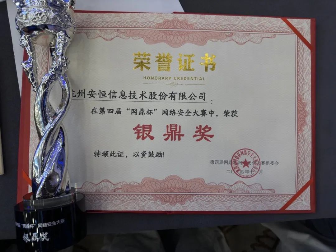 11月25日,由公安部、教育部共同指导,贵州省公安厅、贵阳市人民政府联合主办,国家网络与信息安全信息通报中心、教育部教育管理信息中心、网络空间安全专业教学指导委员会支持,公安部第一研究所承办的第四届“网鼎杯”网络安全大赛在贵州省贵阳市圆满落幕。安恒信息在决赛中荣获银鼎奖殊荣。
