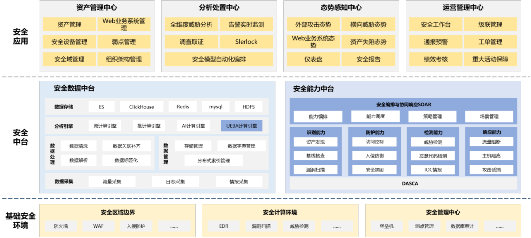 为解决上述问题,安恒信息提出了一套涵盖基础安全防护能力建设、态势感知平台搭建、自动化响应机制建立以及综合安全运营服务体系形成的解决方案。