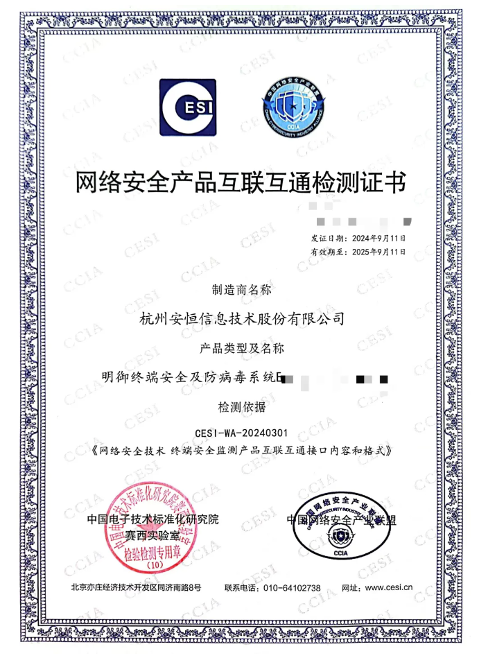 安恒信息作为网络安全行业中的重要力量,在为各行各业提供高质量网络安全产品和服务的同时,多年来一直积极参与网络安全相关标准的制修订工作。在深度参与国家标准GB/T 44886.1-2024的研制过程中,安恒信息同时参与了“资产信息格式”“威胁信息格式”“告警信息”“功能接口”等多项在研的网络安全产品互联互通国家标准的研究制定工作,成为中国网络安全产业联盟第一批网络安全产品互联互通技术规范试点单位,积极参与各项国家标准的试点验证工作,推动网络安全产品互联互通标准在研发过程中与实际应用紧密结合。