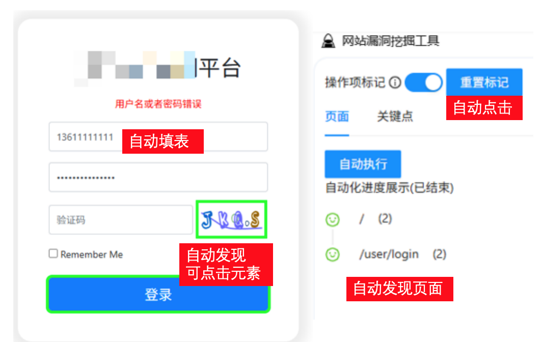 要想测试的更全面,渗透人员在渗透过程中,要尽可能全的触发所有页面功能,过往这需要渗透人员自主分析页面内容、填写表单、点击按钮。现在通过安恒“渗透测试智能体”自带的浏览器插件,可以自动填写表单、点击页面的可交互元素。交互过程中产生的流量,又会被持续的收集,发送给智能体进行全面的风险检测,让隐藏在页面交互中的漏洞无所遁形。