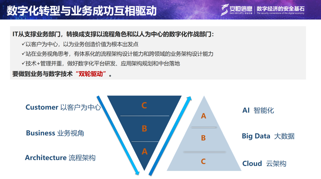 基于这一理念,安恒2.0数字化转型于2021年全面启动,旨在打造以数字技术为核心的创新管理模式,通过开源节流、降本增效、风险控制来提升企业整体竞争力。