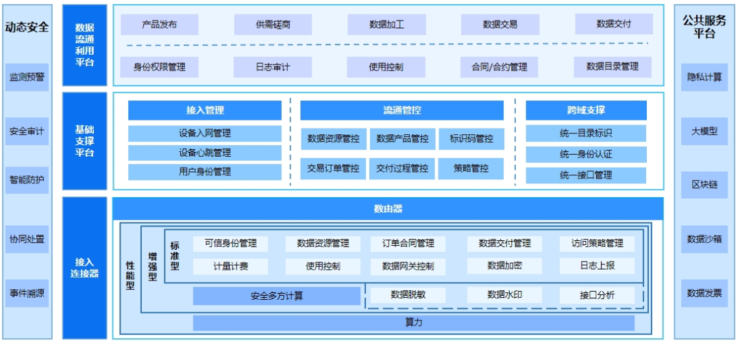 连接器、基础支撑平台、流通利用平台、公共服务平台(隐私计算、沙箱)、网络与数据安全保障体系全部自研;