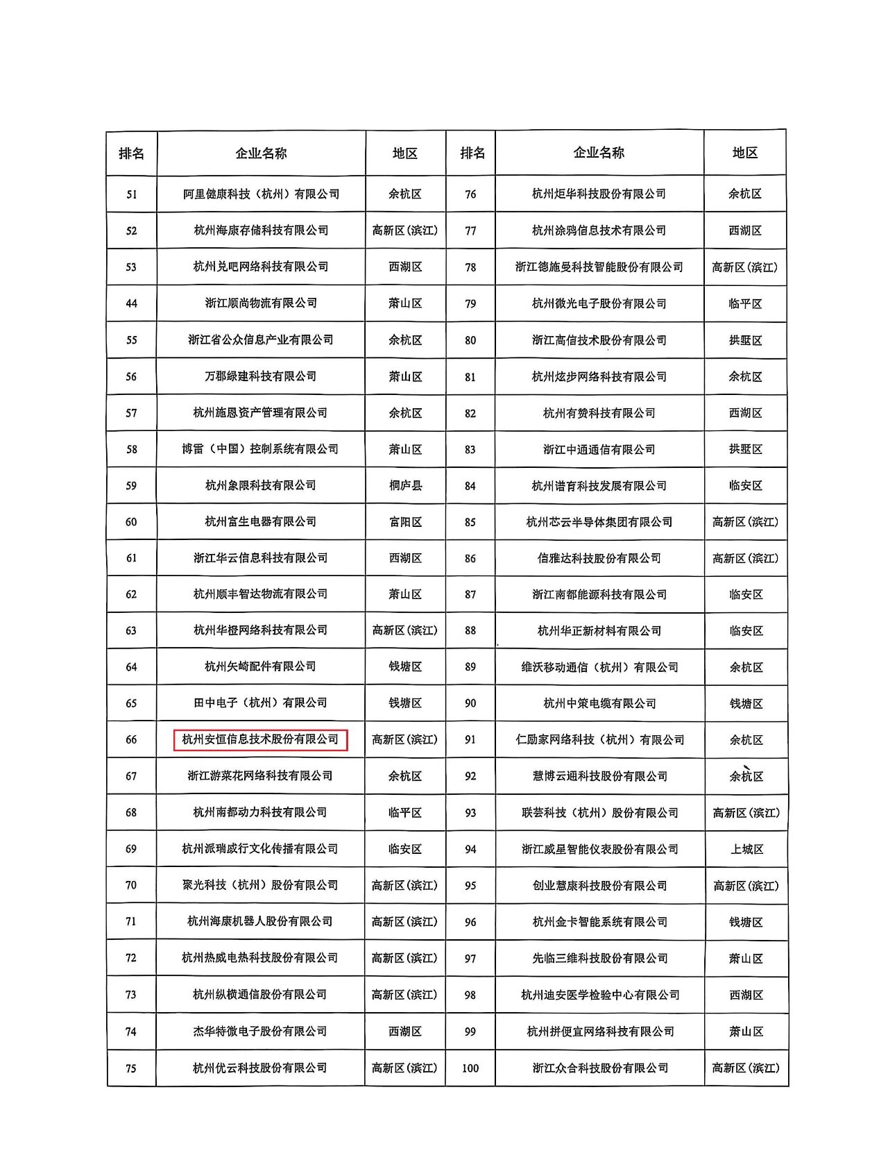 该系列名单以2024年企业营业收入为核心评价标准,遵循国际国内通用规则进行严格遴选,是衡量杭州企业发展质量与产业贡献的重要权威参考。连续入选数字经济百强,不仅标志着安恒信息的综合实力与业务规模获得了市场的持续认可,更凸显了其作为数字安全基座提供者,在赋能杭州数字经济高质量发展中的核心价值。
