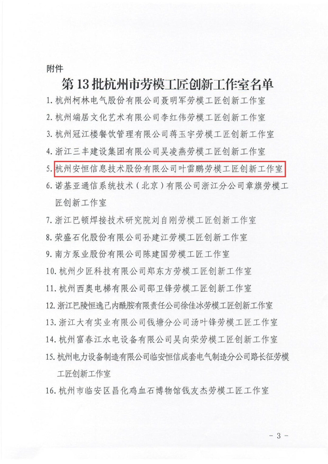 近日,杭州市总工会公布第13批劳模工匠创新工作室重点培育名单,安恒信息叶雷鹏劳模工匠创新工作室成功入选。
