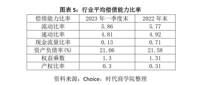 从权益乘数和产权比率的均值来看,该行业的公司大多为低风险财务结构,财务政策稳健。