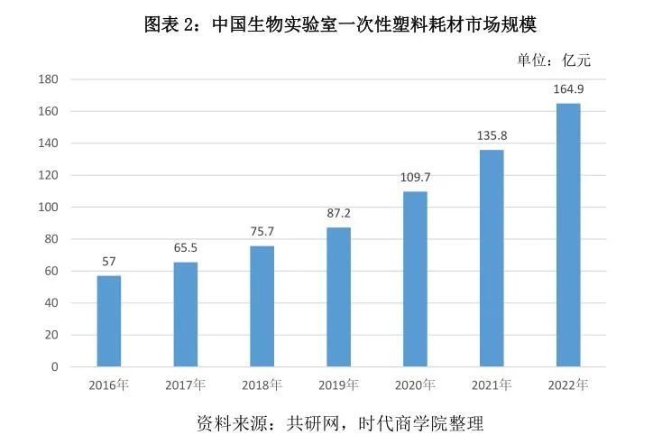 从我国情况来看,我国生物实验室一次性塑料耗材行业还处于发展初级阶段,整体规模偏小,生物技术产业的快速发展带动生物实验室一次性塑料耗材市场需求快速增长。