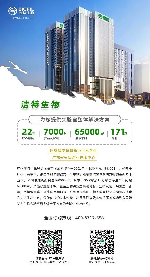 洁特生物掌握多项国际领先的生物实验室耗材关键核心技术和先进的生产工艺,在过去20多年的时间里,我们的产品品质始终如一,以确保您的研究能获得最佳的重复性和最可靠的结果,因此,一直被研究人员所广泛使用。本次展出产品包括生物实验室高端耗材、试剂、实验室仪器等众多明星产品及研发新品,敬请期待!