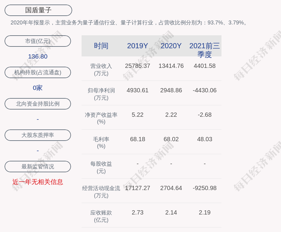 2020年年报显示,国盾量子的主营业务为量子通信行业、量子计算行业,占营收比例分别为:93.7%、3.79%。