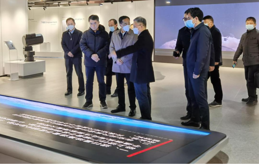 在公司展厅,王启荣市长一行参观了世界首台实现量子优越性的光量子计算机“九章”(模型)与“祖冲之二号”同等规模的超导量子计算原型机,并对国盾量子的小型化量子保密通信设备、光量子芯片等核心器件、“墨子号”星地一体量子保密通信等有了更深一步的了解。