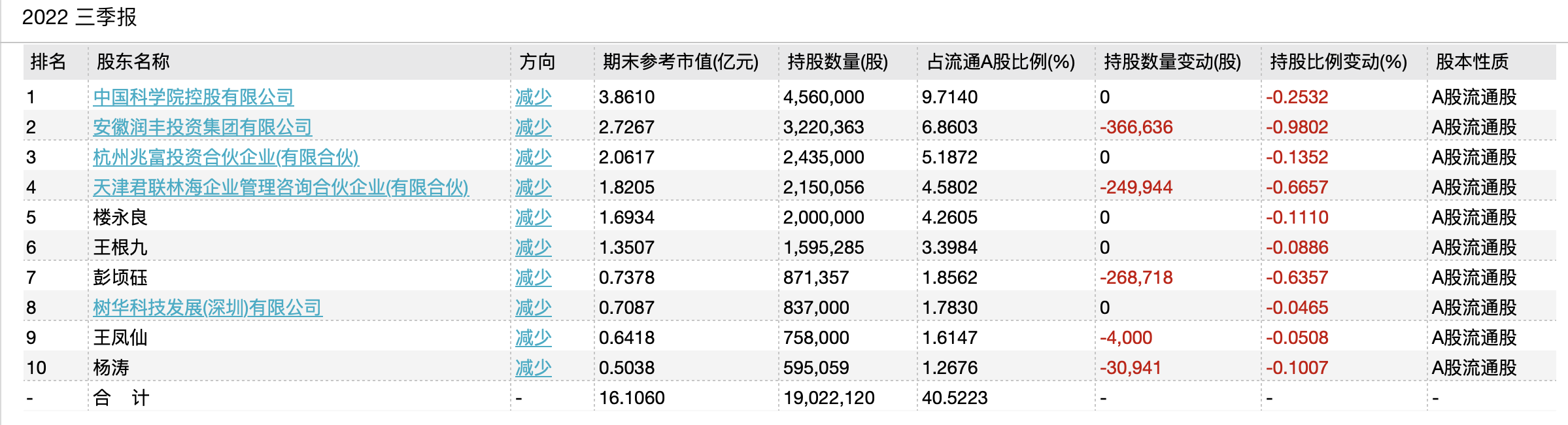截至2022年三季报披露,润丰投资、王根九、王凤仙分别是国盾量子的第二大、第六大、第九大流动股东。减持前,润丰投资及一致行动人合计持股数量为557.3648万股,持股比例为6.95%,均为IPO前取得,且已于2021年7月12日起解除限售并上市流通。