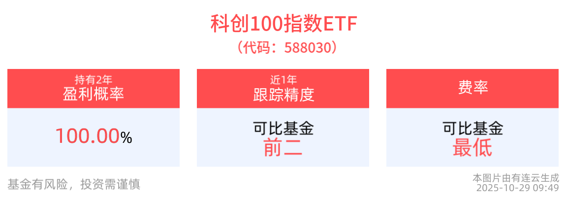 流动性方面,科创100指数ETF盘中换手0.52%,成交3123.50万元。拉长时间看,截至10月28日,科创100指数ETF近1年日均成交3.94亿元,居可比基金第一。