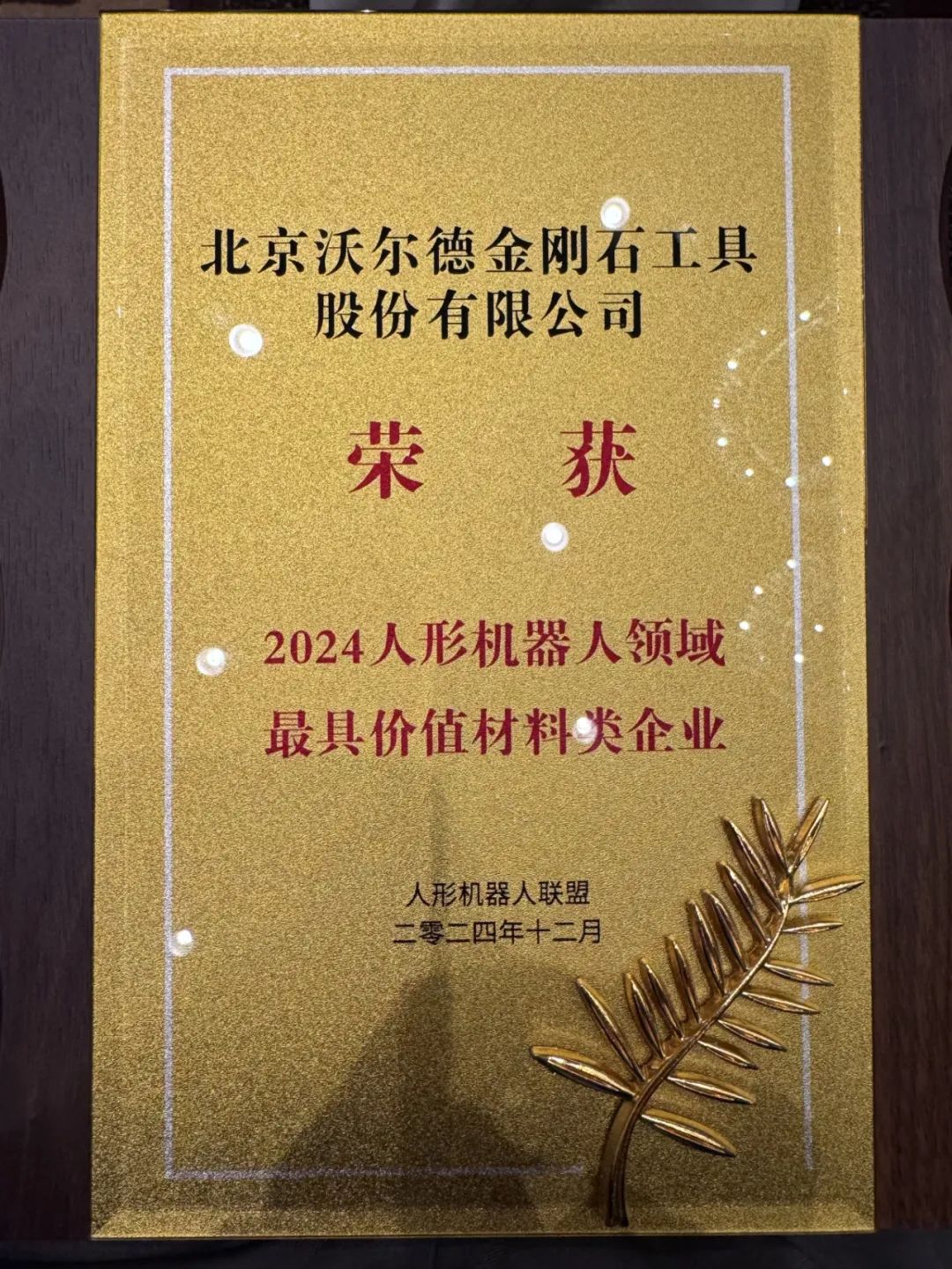 12月20日,备受瞩目的2024人形机器人行业盛典在江苏常州隆重举行。此次盛典旨在表彰和奖励在人形机器人领域做出卓越贡献的企业和个人,并推动全球人形机器人产业的持续创新与发展。在这场科技盛宴中,沃尔德荣获了“2024人形机器人领域最具价值材料类企业”这一殊荣。